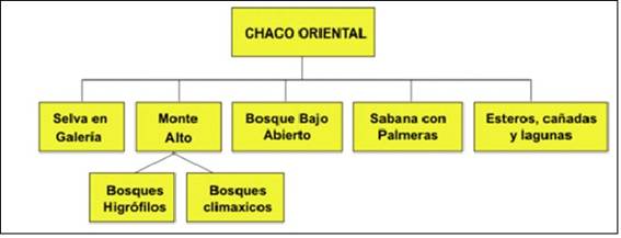 Fuente: Alberto, J. A. (.2006). El Chaco Oriental y sus fisonomías vegetales. Revista del Instituto de Geografía de la UNNE, (22). Universidad Nacional del Nordeste, Facultad de Humanidades, Instituto de Geografía