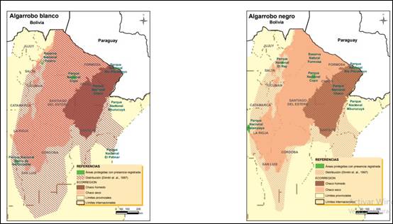 Keywords: humid Chaco phytogeographic district; white carob (Prosopis alba); black carob (Prosopis nigra)