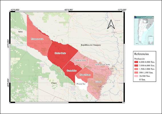 Fuente: Elaboración propia a partir de datos de la Secretaría de Agricultura, Ganadería y Pesca de la Nación (SAGyP), Ministerio de la Producción y Ambiente de la Provincia de Formosa y Censo Nacional de Aserraderos (2016).